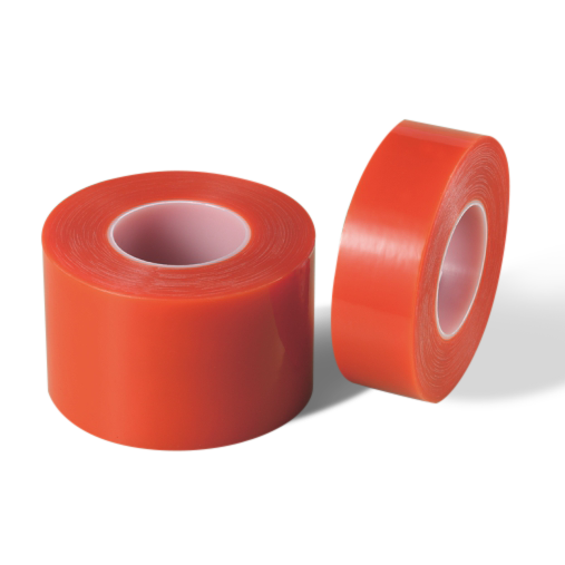 具有良好的抗老化及抗拉強度,抗溶劑性,軟化性,抗濕性好,并且具有優越的加工性能及耐溫性。 產品符合ROHS,鹵素環保法規要求,對PP、PC、PET材料及泡棉都有很高的粘接強度,適合粘接各種材料。 根據表面離型材料分為:紅色BOPP離型膜,褐黃色格拉辛紙。